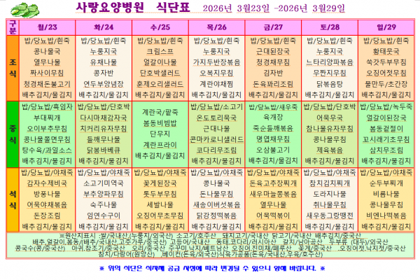 사랑요양병원 3월 넷째주 식단표