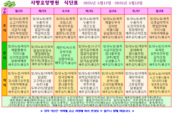 사랑요양병원 5월 셋째주 식단표