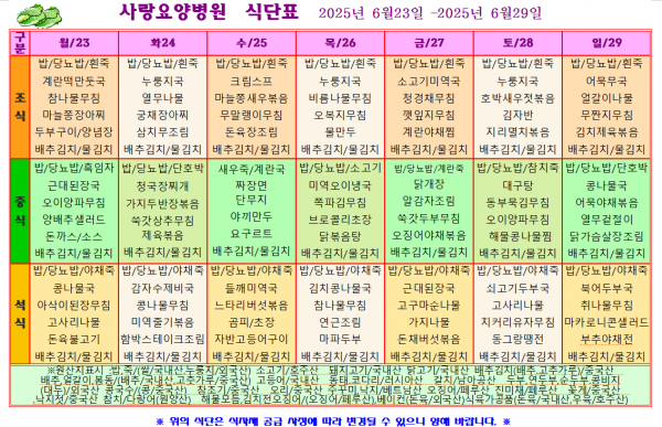 사랑요양병원 6월 셋째주 식단표