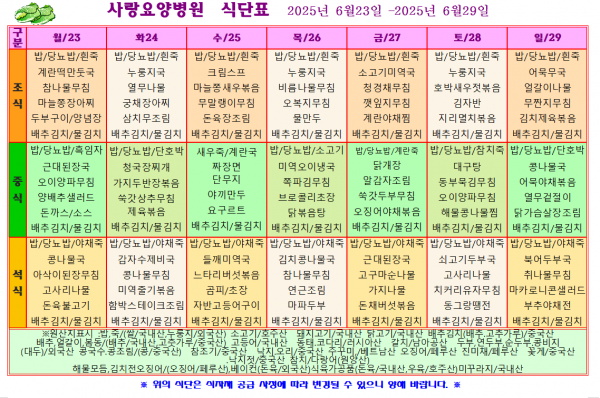 사랑요양병원 6월 넷째주 식단표