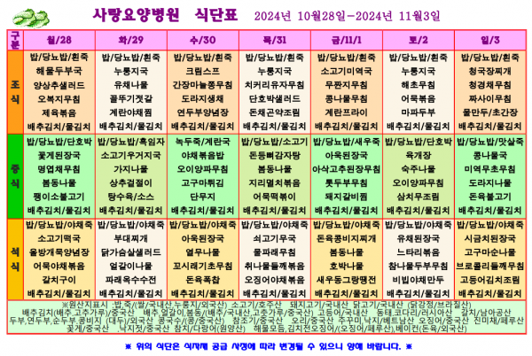 사랑요양병원 10월 넷째주 식단표