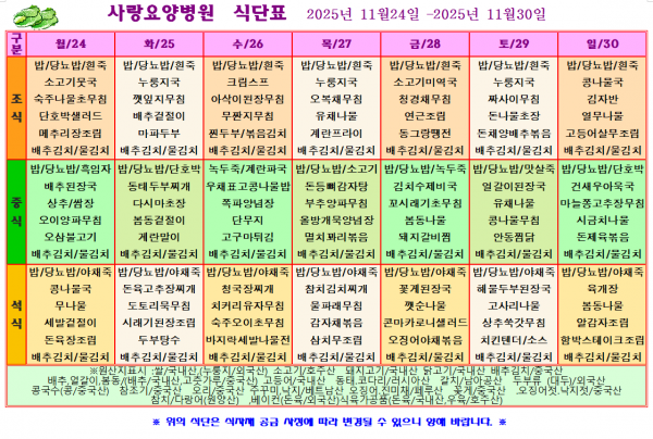 사랑요양병원 11월 넷째주 식단표